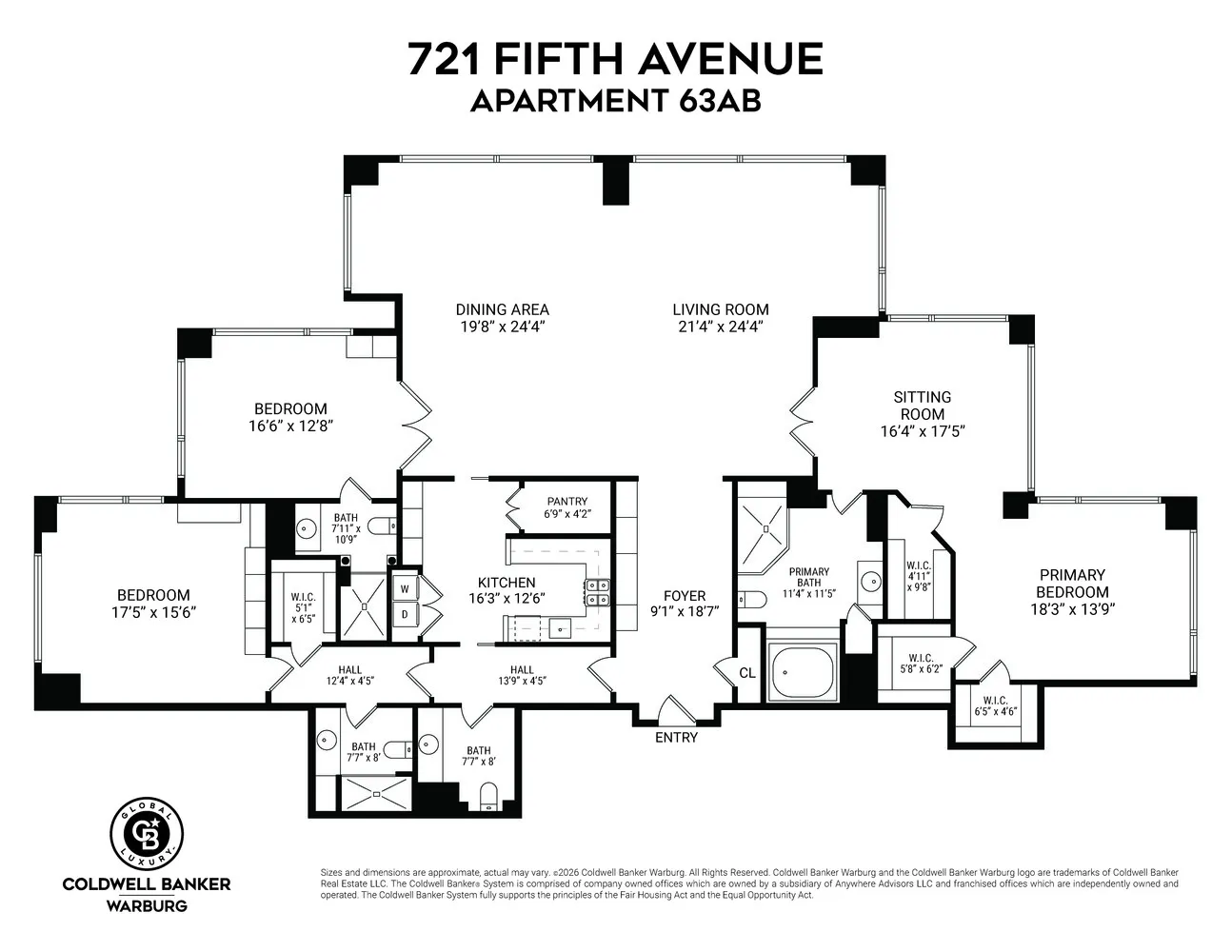 Ρerched high above the citу on the 63rd floor, this extraordinary three-bedroom, three-and-a-half-bathroom residence is a masterpiece of design and craftsmanship. Every inch of this home has been meticulously curated, from the intricate crown molding and rich wood paneling to the exquisite flooring and breathtaking bathrooms designed by Kenneth Bordewick of Beverly Hills.