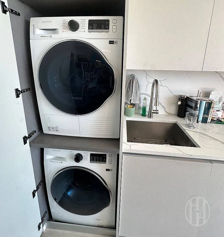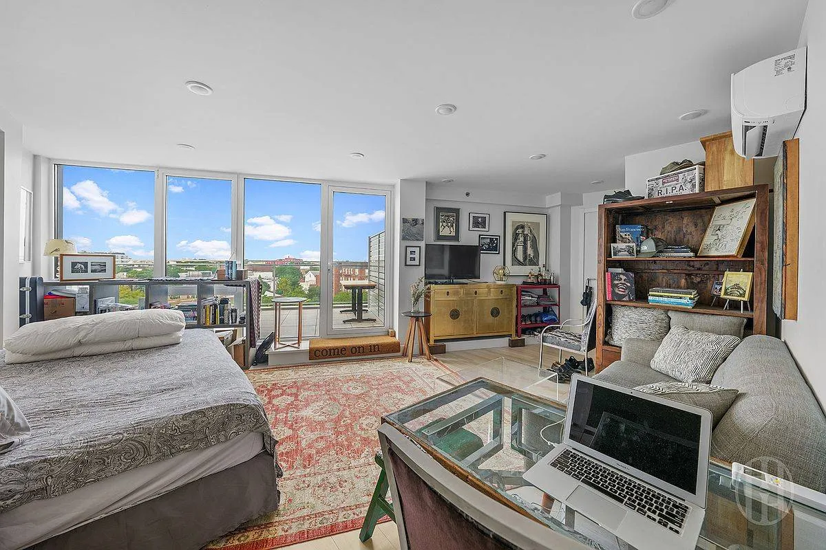 Residence 8A is a west-facing studio with floor-to-ceiling windows overlooking the trees of Ocean Parkway. The open layout features a linear kitchen with paneled Samsung and Beko appliances, Calacatta quartz countertops, Copatlife Italian cabinetry, and a 0-radius sink. Ample closet space, an in-unit washer/dryer, and a spacious private terrace unique to this residence complete the home.