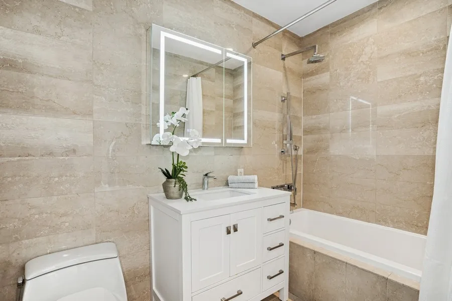 Moments from the Seaport District, the East River Esplanade, Fraunces Tavern, Crown Shy, and Stone Street, this sun-drenched 3-bedroom, 3.5-bathroom residence spreads 2,510 square feet across two pristine levels. A private loggia is the ultimate outdoor spac e for entertaining, lounging, and enjoying breathtaking sunrises over the city.