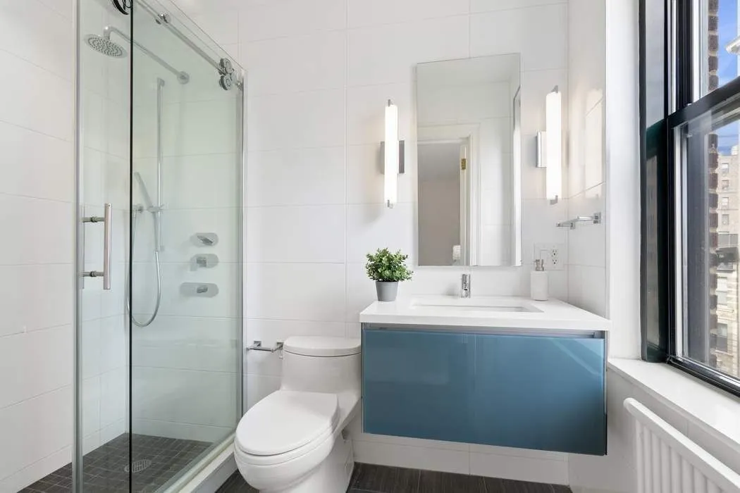 The serene primary suite offers generous proportions, a walk-in closet, double exposures, and a beautifully renovated en-suite bath. Two additional bedrooms are well-scaled and versatile, supported by a second modern full bath finished with refined materials and contemporary design. Abundant closets are thoughtfully distributed throughout the home.