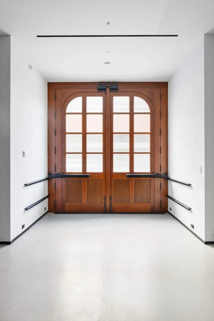 Access the ground floor via the private elevator or beautifully restored original firehouse staircase -which links the living room to a media room, powder room, and adjacent 892 square foot gallery/4-car garage.