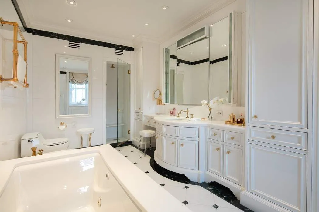Topping the allure are the breathtaking views of Central Park, Fifth Avenue, landmark architecture and Manhattan skyline, enjoyed from oversized windows lining the entire southern and western sides of the sun-bathed apartment. Another very special attraction is the separate 137 sq ft windowed storage unit on same that comes with the apartment and has its own full bathroom.
