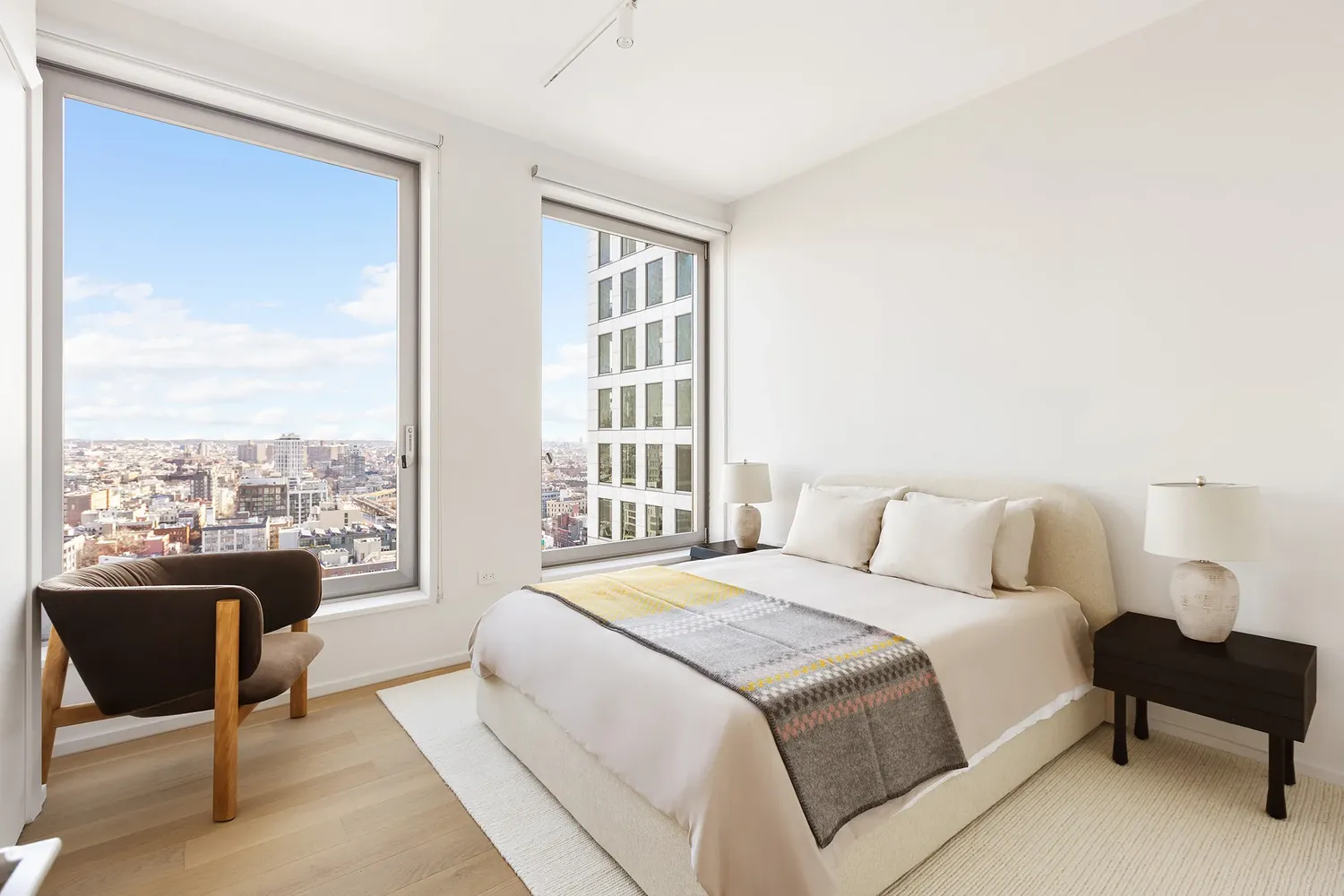 Situated on the 32nd floor of One Domino Square, Residence 32D is a beautifully designed two-bedroom, two-bathroom home with expansive north and east exposures, offering captivating views of the city skyline.