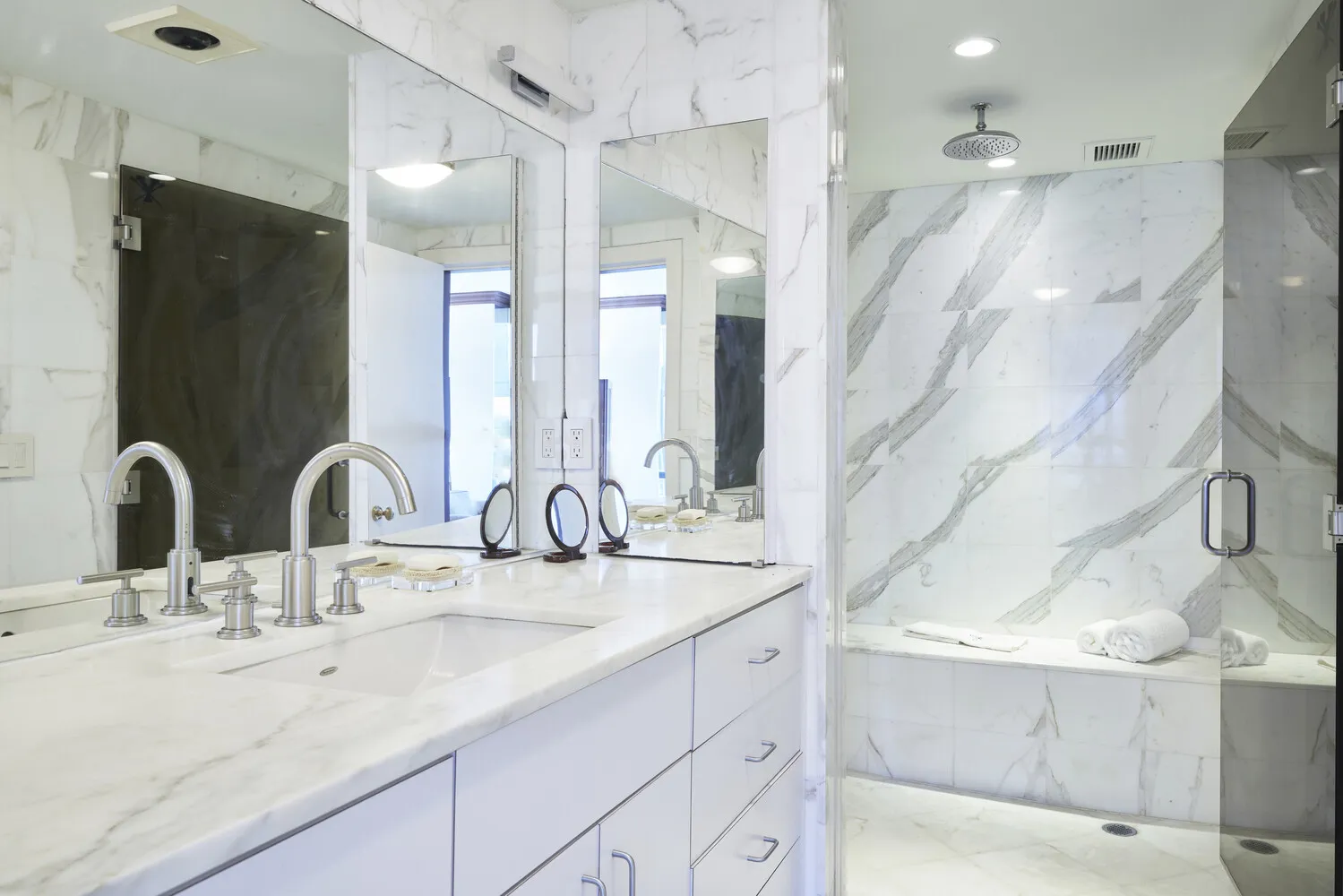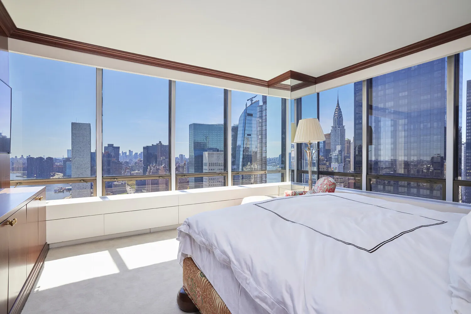 The Upper Level (38th flr.) boasts three bedrooms and a staff room with a laundry area and private bath. The primary Bedroom features a large marble Bathroom, walk-in closet, and magnificent views, while two additional large bedrooms with walk-in closets and en-suite baths complete the floor. High ceilings and cedar closets abound along with Central A/C and beautiful décor.