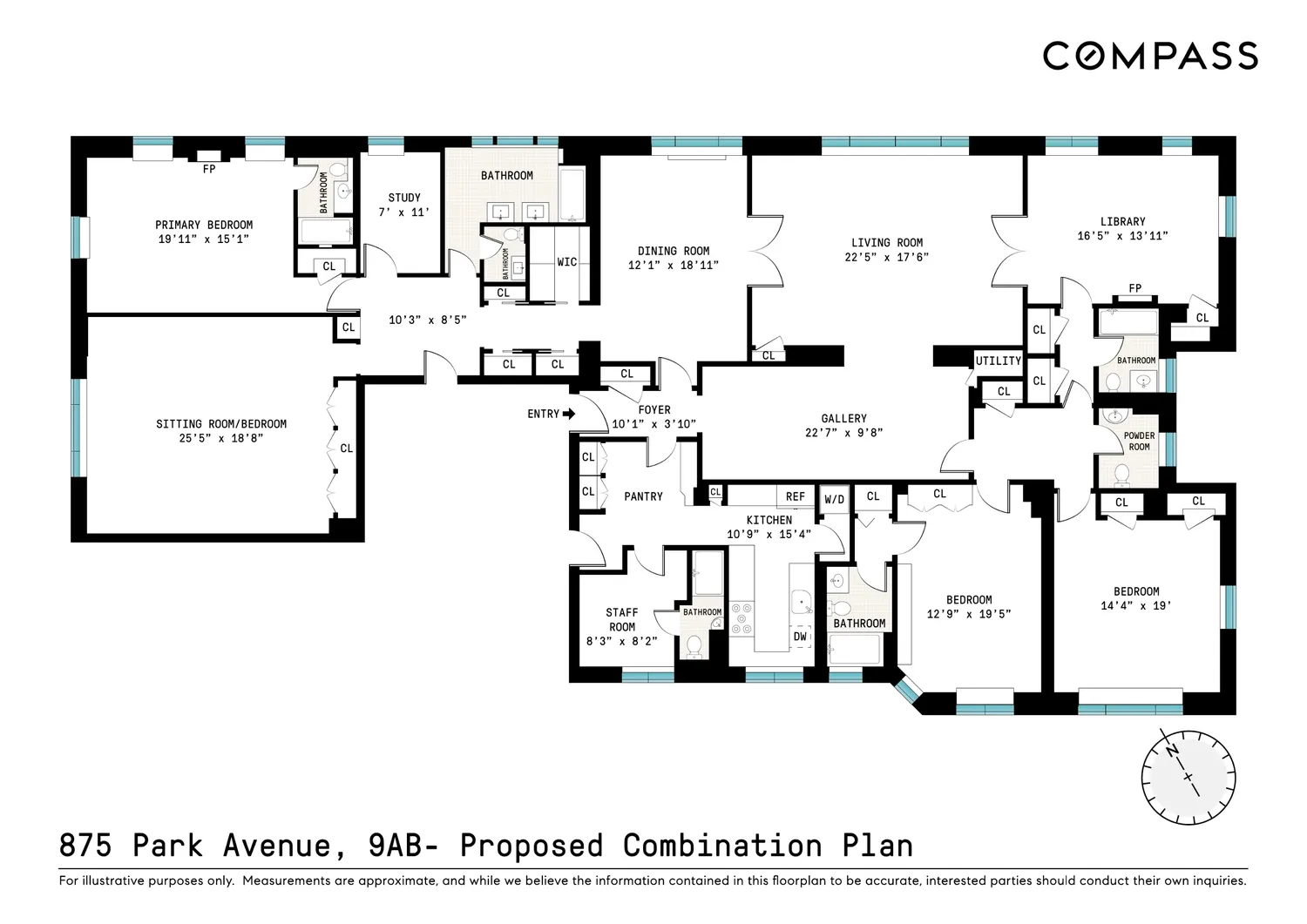 A formal dining room, gracious foyer, windowed kitchen, pantry, and home office make this a compelling canvas for both comfort and style. This residence also features a staff bedroom and bathroom as well as two big storage spaces. Modern conveniences such as central air conditioning and an in-unit washer/dryer are complemented by impeccable building amenities, including a full-time doorman, gym, bike room, common storage, and a shared laundry area.