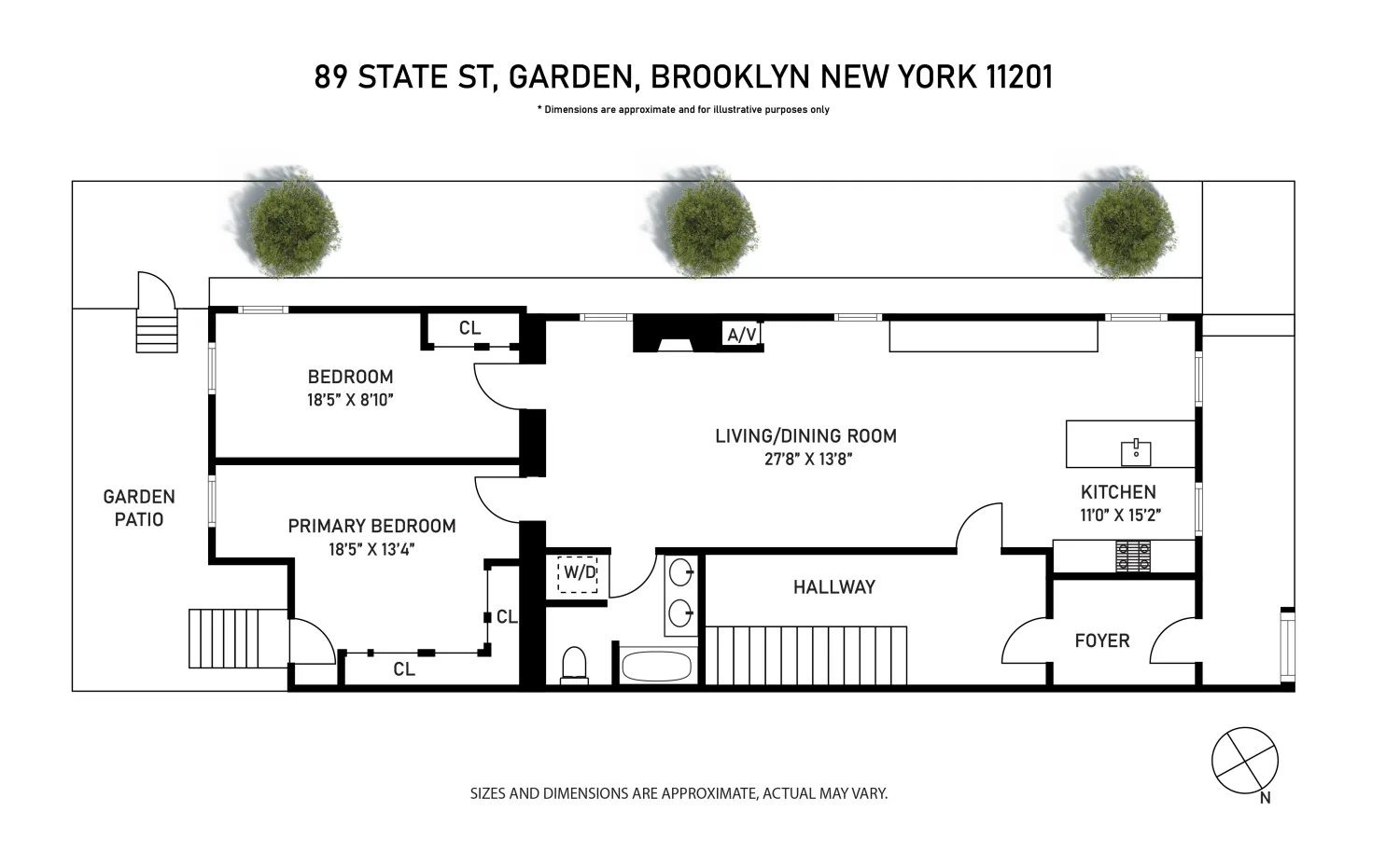 At the corner of tree-lined State & Henry Streets is a unique Brooklyn Heights 2-bedroom, 1 (can be 1 1/2) bath garden home with outdoor space and a wood-burning fireplace. With three exposures surrounded by mature plantings, this fully renovated home retains its pre-war character.