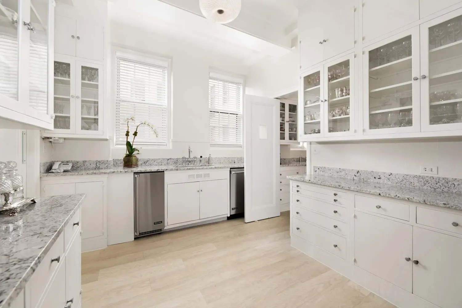 The expansive Gallery features a sweeping staircase and opens onto a vast corner Living Room. There is also a handsome Library and a lovely and large Dining Room with double exposures. Each of these impressive public rooms is blessed with marvelous proportions and scale. A Powder Room is accessible from the Entry Hall as is a nice Guest Bedroom with ensuite Bath. The sizable Butler's Pantry and lovingly restored original Kitchen adjoin a Breakfast Room.