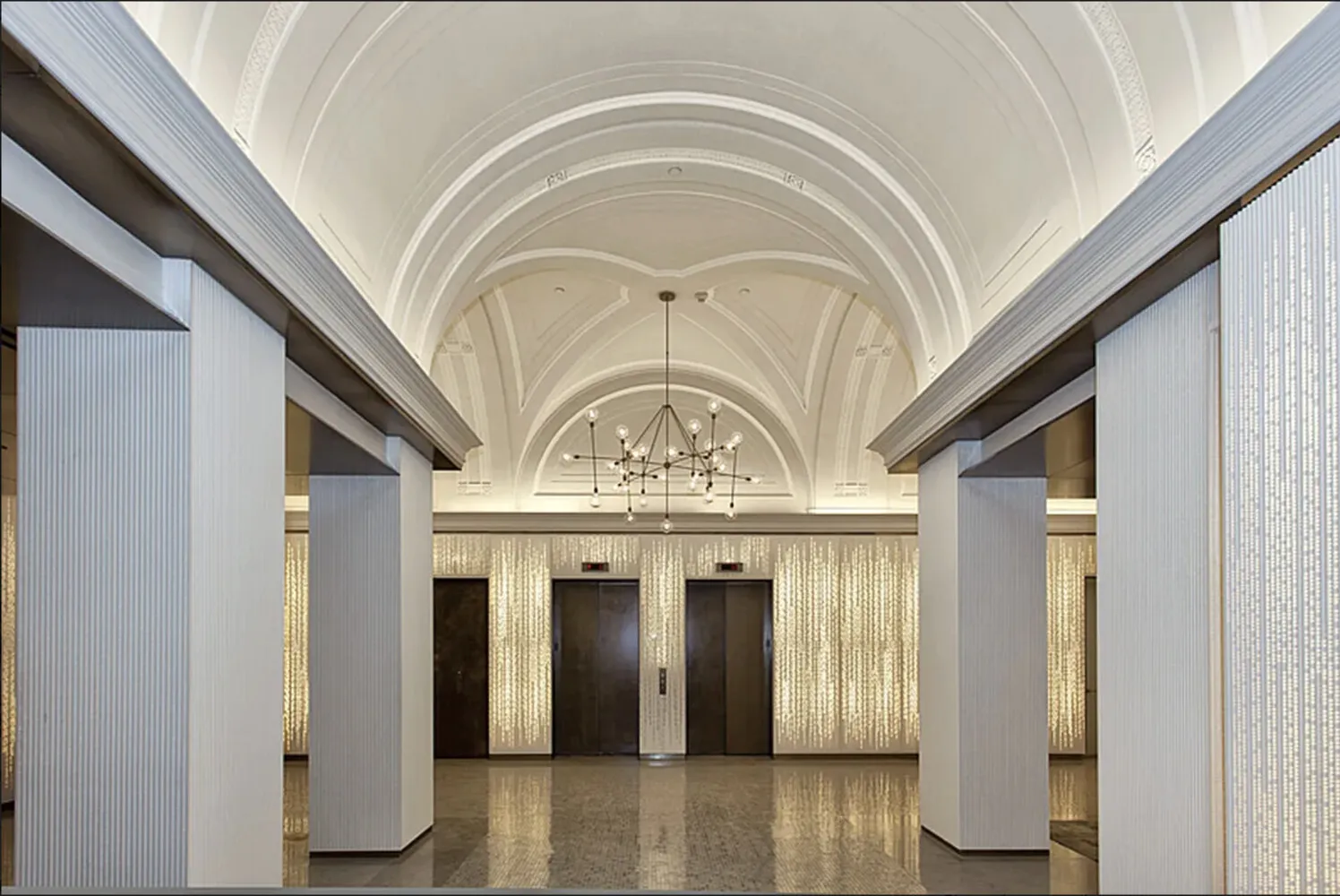 Originally converted and masterfully restored, 93 Worth Street is a boutique condominium, thoughtfully designed to honor its industrial heritage while delivering modern luxury. Residents are welcomed by a dramatic vaulted lobby accented with custom perforated Corian panels inspired by TriBeCa's historic textile industry.