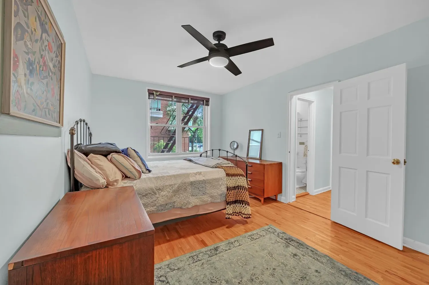 Upon entering, there is a large foyer which can serve as a dining room or entertainment space flowing into a large living room with a sunny, light filled ambiance, open sky and views of the Verrazano Bridge. The bathroom has been renovated. Beautiful hardwood flooring runs throughout the apartment. The apartment features five closets including a California-style closet in the bedroom.
