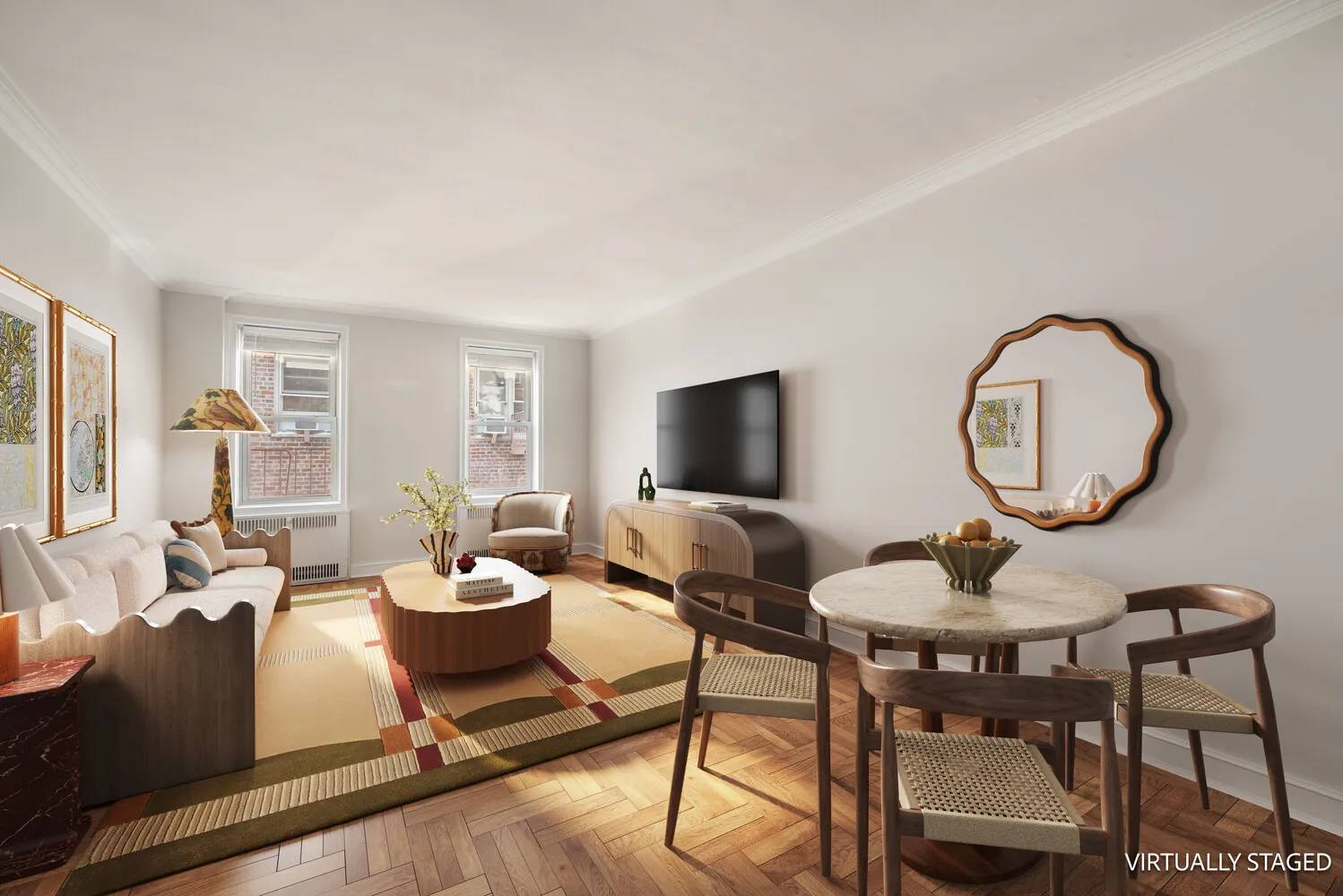 Apartment Ε4 features high ceilings, eight windows with two exposures, and a generously proportioned floor plan with four closets to ensure a lifestyle of gracious living. The sizeable entry foyer functions as a dining room or home office, opening onto the original 1940's kitchen with a