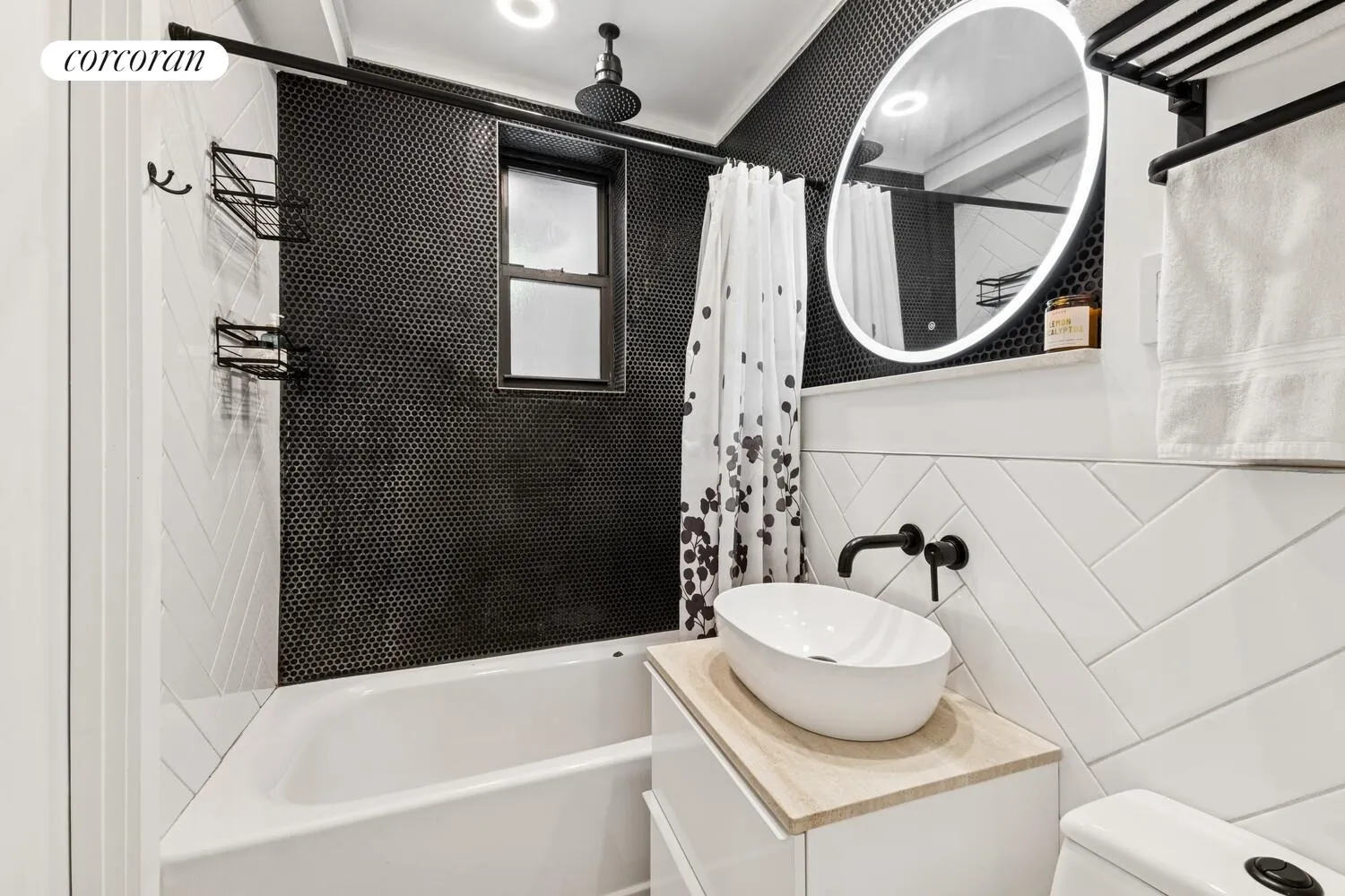 The primary bedroom offers wall-to-wall wardrobes, a walk-in closet with space-efficient sliding wooden doors, and a soundproofed ceiling. The recently renovated bathroom features a rainfall shower, with the washer/dryer hook-up conveniently adjacent.