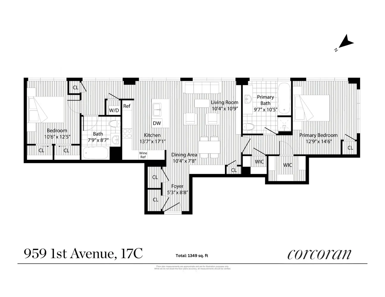Welcome to Residence 17C-a bright and intelligently designed 2-bedroom, 2-bathroom corner home spanning approximately 1,349 square feet at the full-service luxury condominium, The Sutton . This elegant residence offers a seamless blend of comfort, modern finishes, and classic proportions, with a thoughtful split-bedroom layout ideal for privacy and functionality.