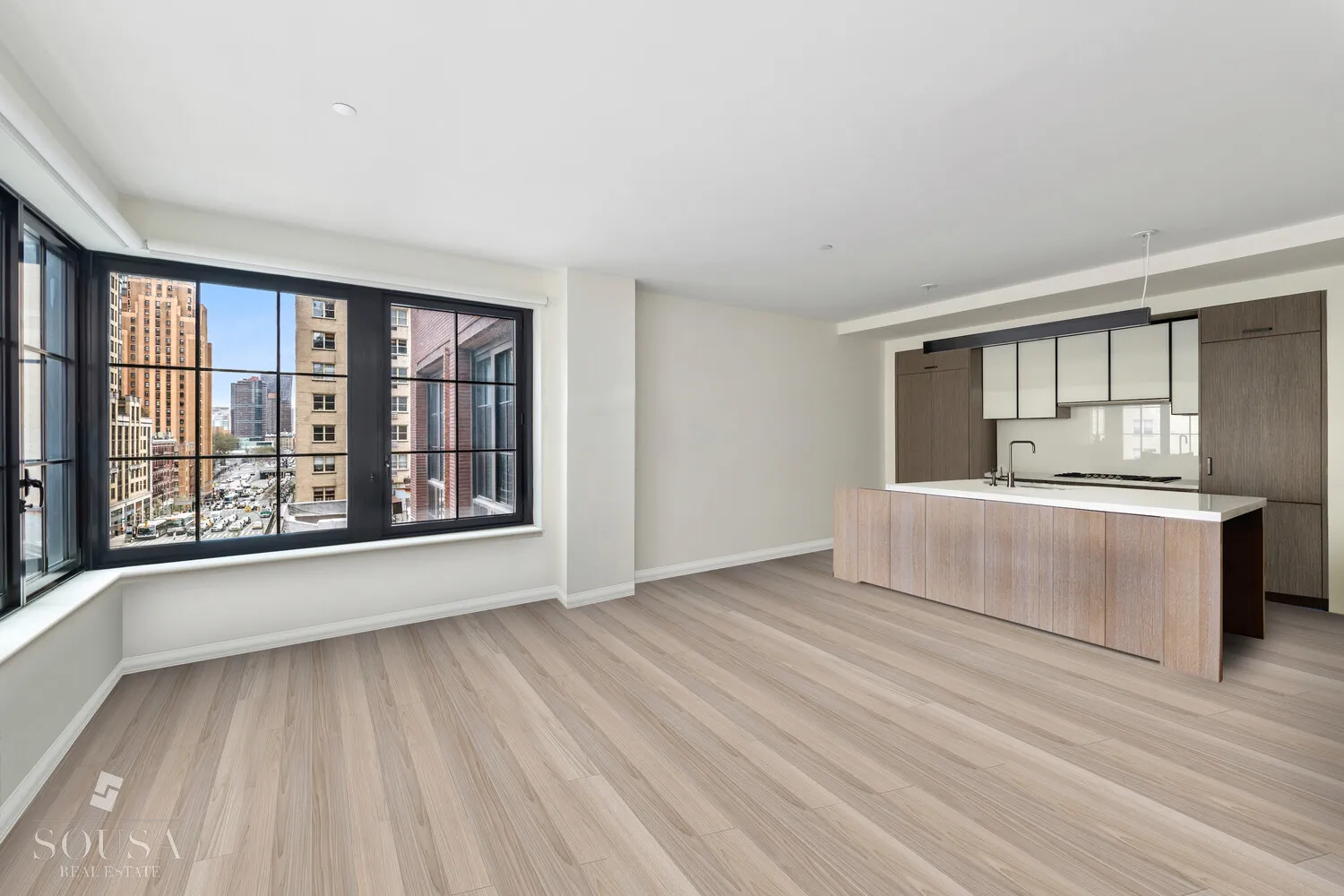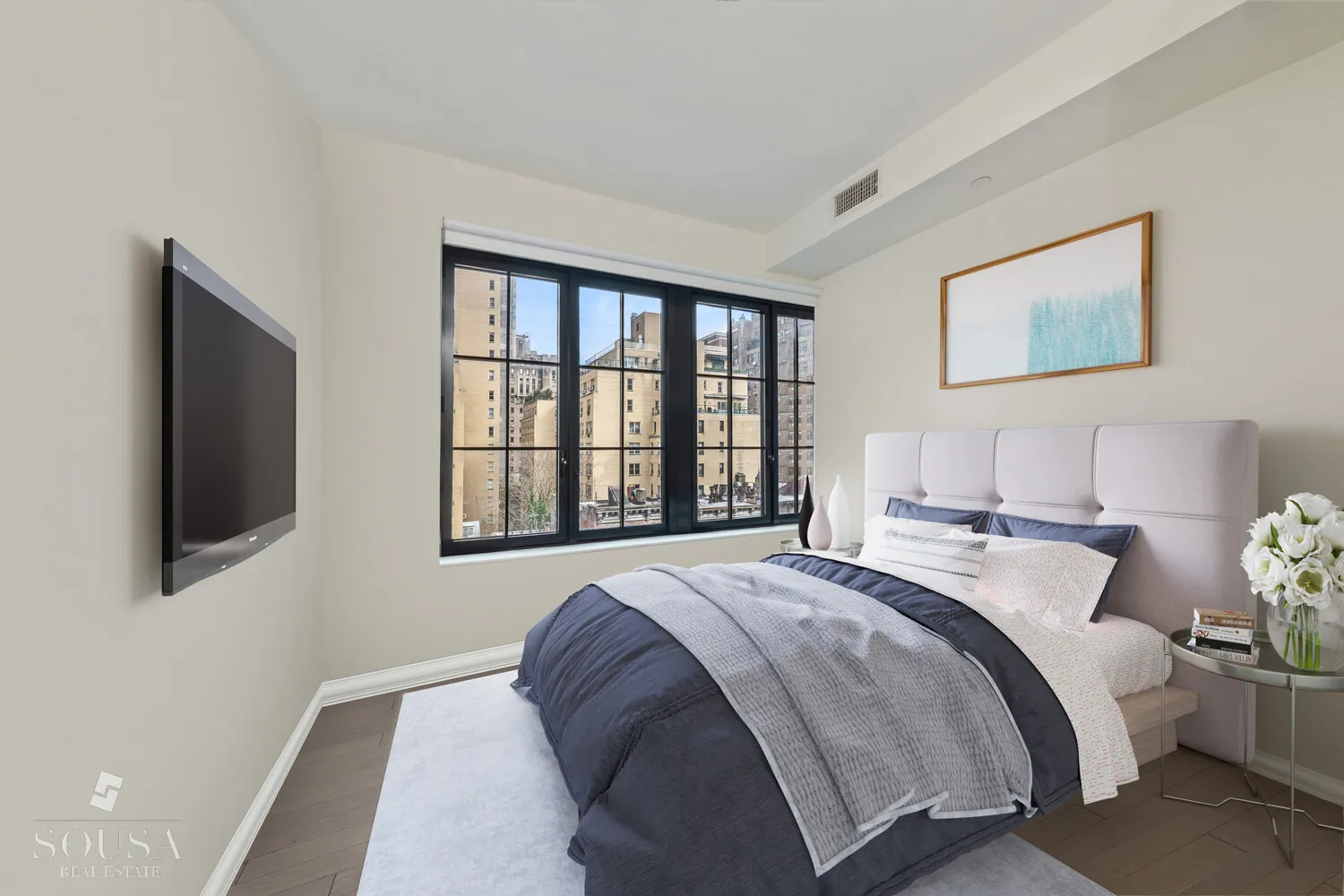 A bright oversized great room with East / South exposures, a dining area for at least six and an open, social kitchen that's ideal for someone who loves to cook. 6" White oak flooring throughout, 10-foot ceilings and 9-foot casement windows. The open kitchen features Gaggenau 4-series appliances, Espekio Blanco glass countertop & backsplash, along with custom kitchen cabinetry by Gold & Reiss. The primary suite with East / North exposures is a tranquil oasis with a walk-in closet (fitted by The Container Store) and a spa like bath with Nero Marquina & Bardiglio marble, herringbone marble flooring, a large stall shower, soaking tub, a double vanity and custom Waterworks fixtures. A gracious 2nd bedroom with Eastern exposure accommodates a queen size bed and has ample closet space. The 2nd bathroom features glazed tiles reminiscent of the Gustavino style tiles of the 59th Street Bridge. Bosch washer / dryer, multiple climate control zones, solar shades and black out shades in both bedrooms are all included.
