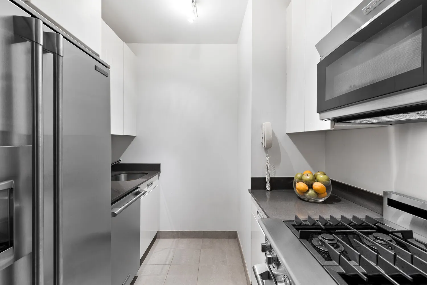 Residents enjoy a full suite of premium amenities, including a 24-hour doorman and concierge, parking garage, roof deck, resident lounge, and a fully equipped fitness center, all designed to enhance everyday living.